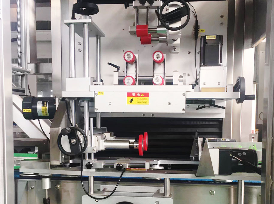 1.套标机的切刀设计使用伺服马达驱动,速度高、动作稳定准确、切口平整,收缩美观,配合标签同步定位机构,切口定位精确度高达±0.2mm。