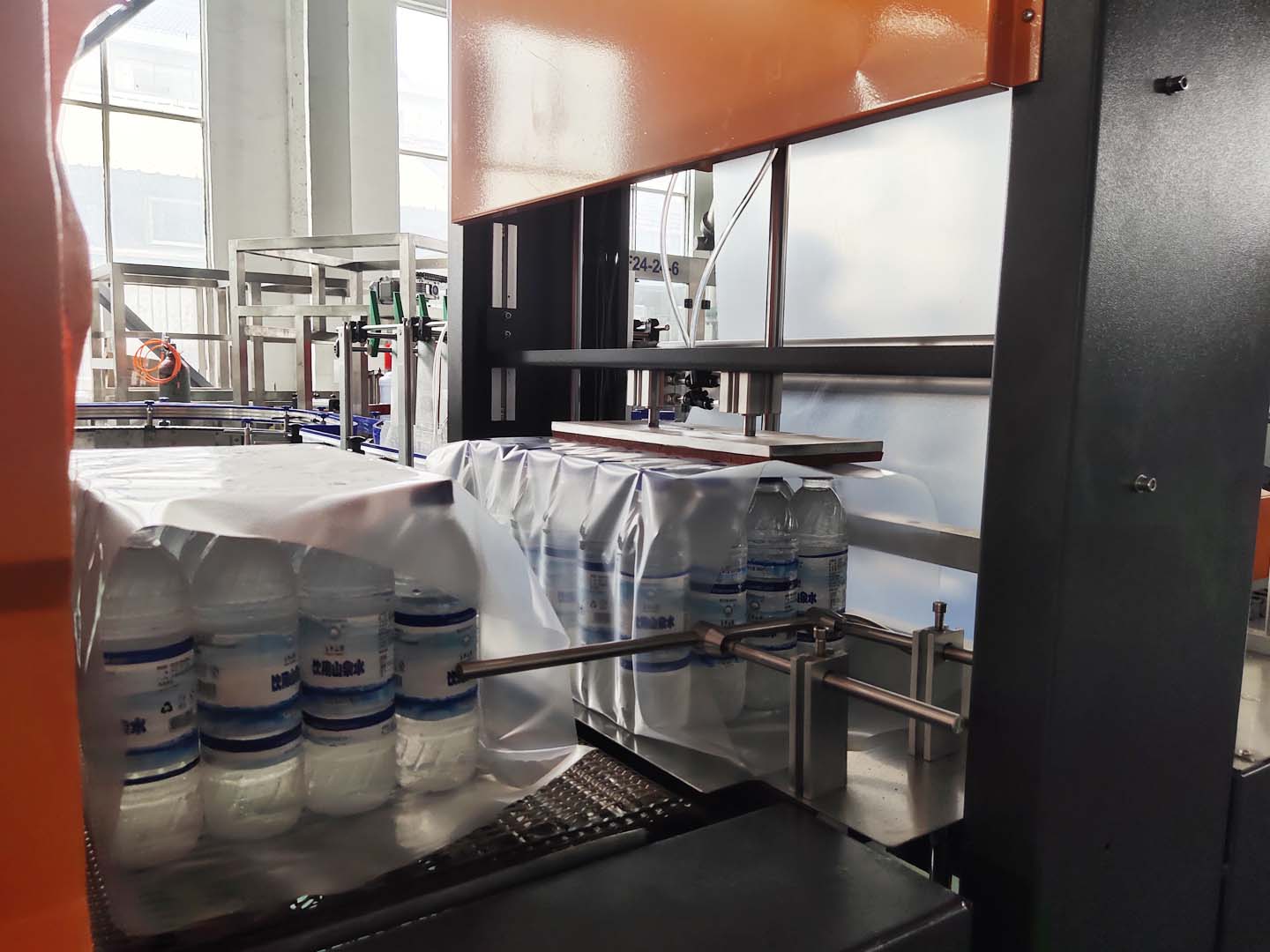 全自动膜包机专为饮品(纯净水、饮料、果汁、乳制品)的高速包装要求设计制造。在产品前进输送过程中,即可自动组合成包,节省时间,提高包装效率。高端机型采用触摸屏操作面板,界面友好,参数设定快捷,便于人机交流及操控。该设备是国内中速热收缩膜包机领域的优质选择。