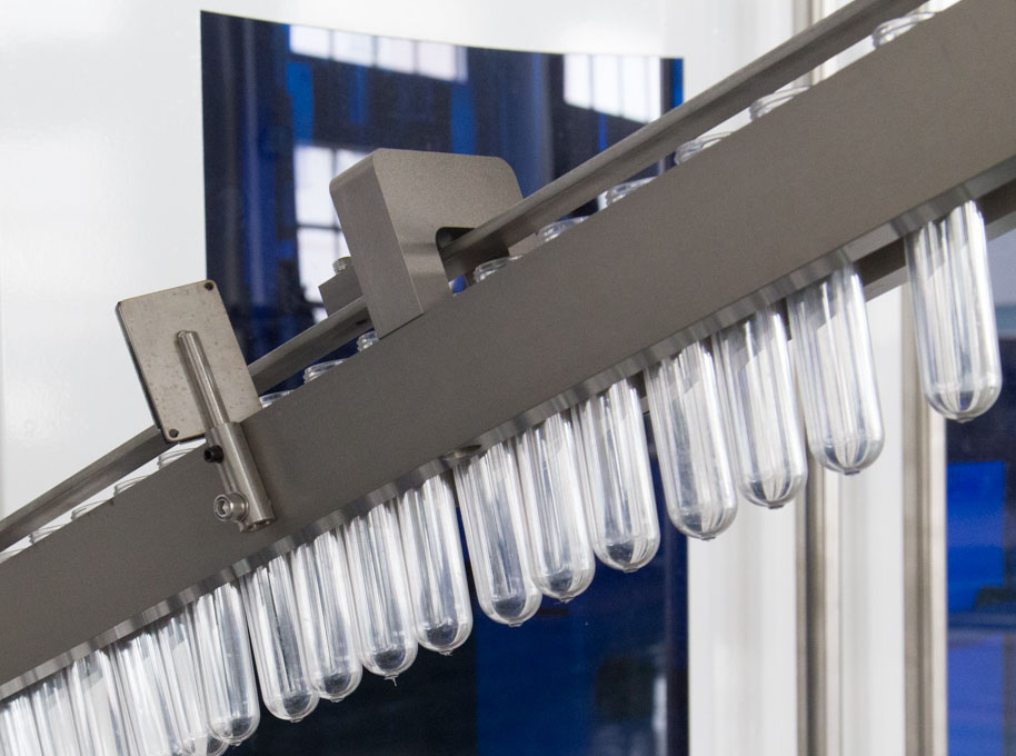 1.高速吹瓶机结构简单,烘箱于主体采用滑道式一体化,维修方便;独特的灯管安装方式,适合不同结构的瓶胚;
