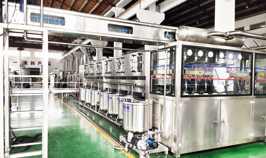 仁宇机械生产的桶装纯净水灌装机5加仑桶装水生产线设备适用于桶装水生产,集冲洗、灌装、封口于一体,是生产饮用矿泉水、的理想设备,整机采用SUS304不锈钢材料,有耐腐蚀,后端输送配备足够厚的不锈钢链条,不容易断裂,强劲的电机,足够马力带动能稳定带动桶装水的输送,电器元件采用西门子,欧姆龙有等品牌,生产线采用电器程序控制,具有联锁、信号、自测有情安全装置。