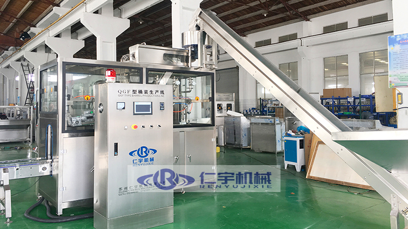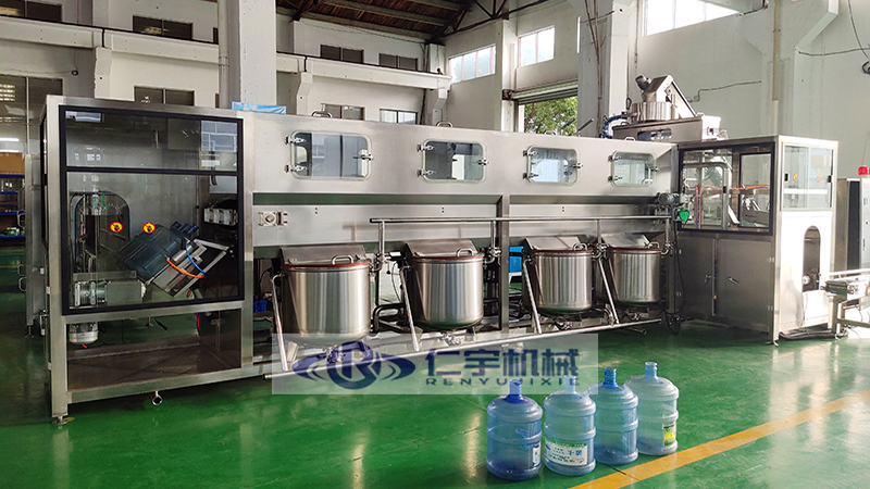 仁宇机械生产的桶装山泉水灌装机5加仑桶装水生产线设备适用于桶装水生产,集冲洗、灌装、封口于一体,是生产饮用矿泉水、纯净水的理想设备,整机采用SUS304不锈钢材料,有耐腐蚀,后端输送配备足够厚的不锈钢链条,不容易断裂,强劲的电机,足够马力带动能稳定带动桶装水的输送,电器元件采用西门子,欧姆龙有等品牌,生产线采用电器程序控制,具有联锁、信号、自测有情安全装置。