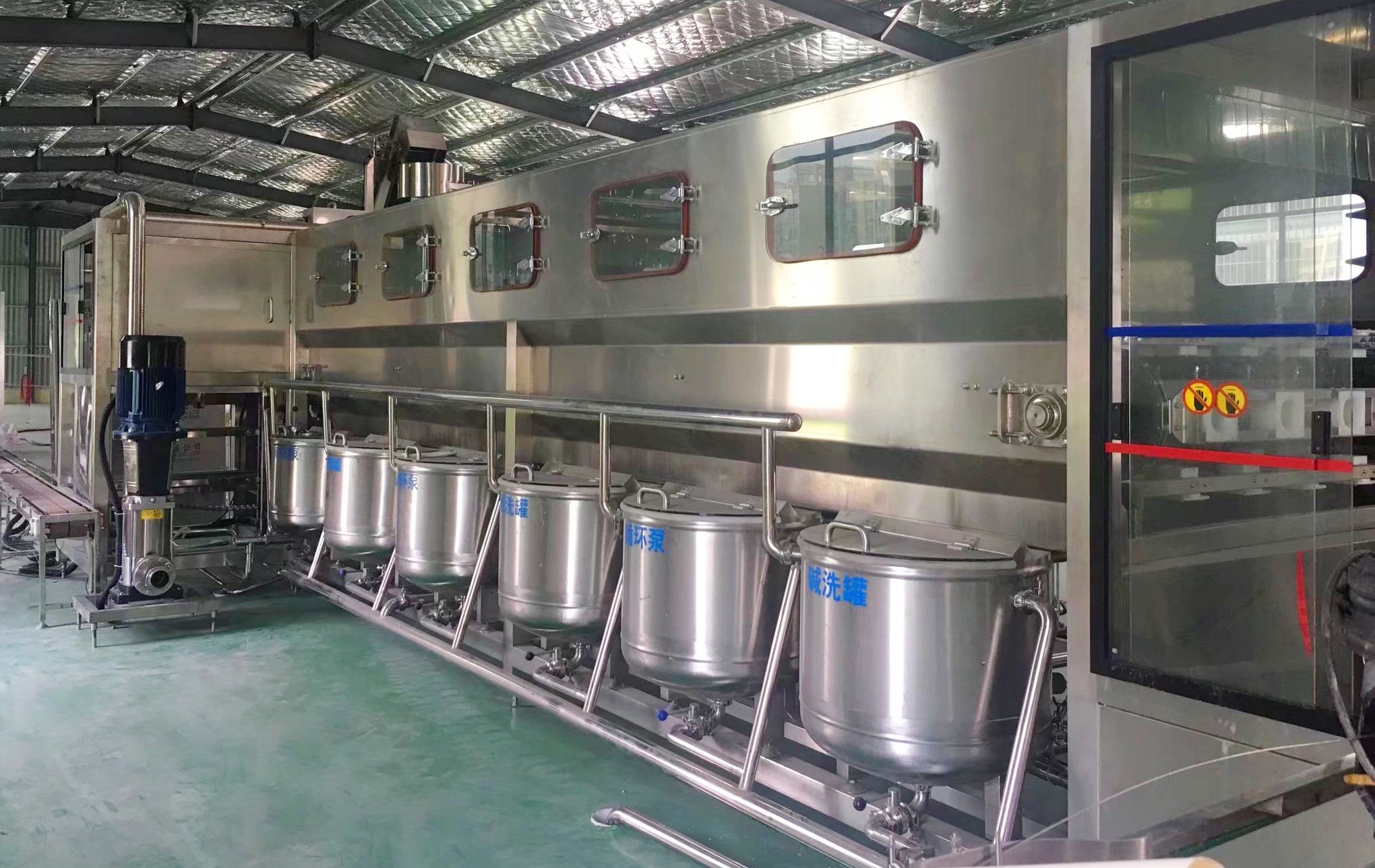 桶装水灌装设备整个洗瓶、灌装、套盖和压盖全过程均在封闭隧道内进行,有效地防止纯净水在灌装过程中可能发生的二次污染,完全符合卫生标准。
