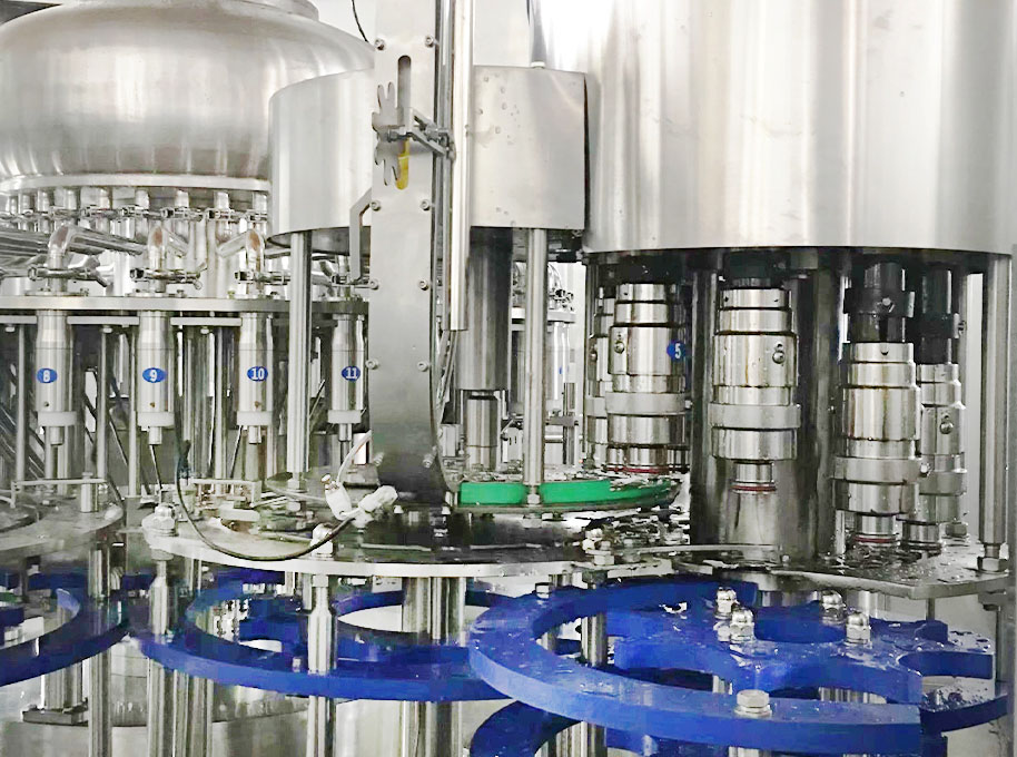含汽饮料灌装机的产量从3000到18000瓶/小时,可由客户自主选择。同时根据客户的需求,均可以完善支持供盖系统自动控制、灌装温度自动检测、物料高温报警、低温停机并自动回流、无瓶不加盖、缺瓶等待、缺盖停机等功能。